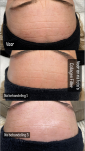 De behandeling met collageen draden is volledig pijnloos en bieden wij aan in onze salon. Na het reinigen en een lichte peeling gaan we met de dermapen (microneedling) de door u gekozen zone(s) van de huid voorbereiden. Hierdoor worden talg en dode huidcellen verwijdert en worden de huidkanalen geopend. Vervolgens brengen wij de draden aan in de rimpels. De draden worden door middel van een serum via de huidkanalen opgenomen in de huid. In de huid zorgen de ingrediënten in de draden voor collageenstimulatie. Hierdoor worden de rimpels van binnenuit opgevuld en worden rimpels vermindert.